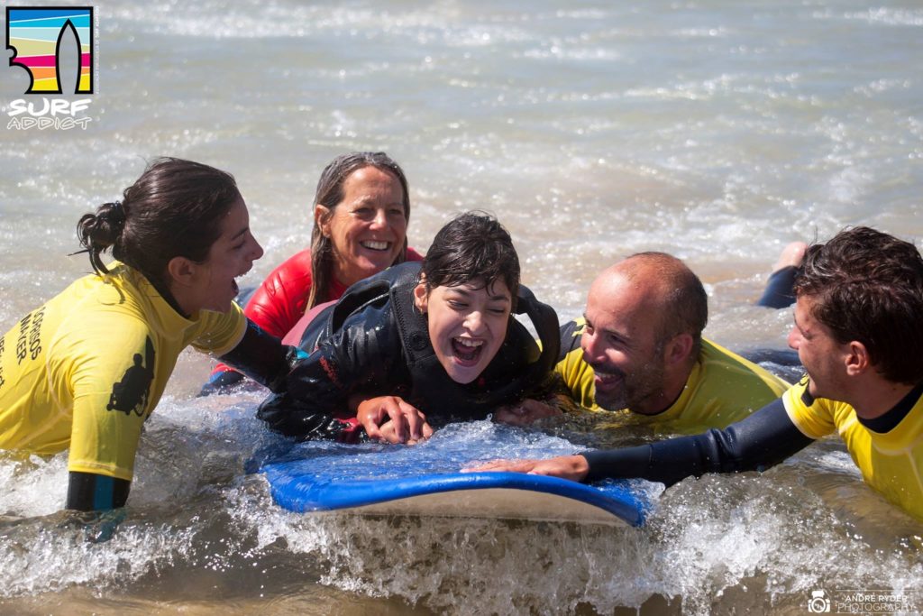 “Surfaddict” was officially created in May 2012 and is the first adapted surfing association in Europe. This association intended to create a national and perhaps European-wide movement that allows people with disabilities to enjoy the sea and beaches based on a simple principle: to train surf schools and to create a large volunteer movement among the surfing community to encourage the surf practice among this segment of the population. They are committed to transform the sport context so that everyone, regardless of any difficulty, could enjoy it. A disability or a wheelchair could not be the reason for someone not to enjoy the waves.